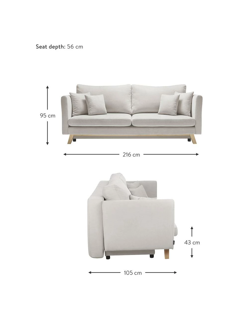 larg. 216 cm, haut. 95 cm, prof. 105 cm