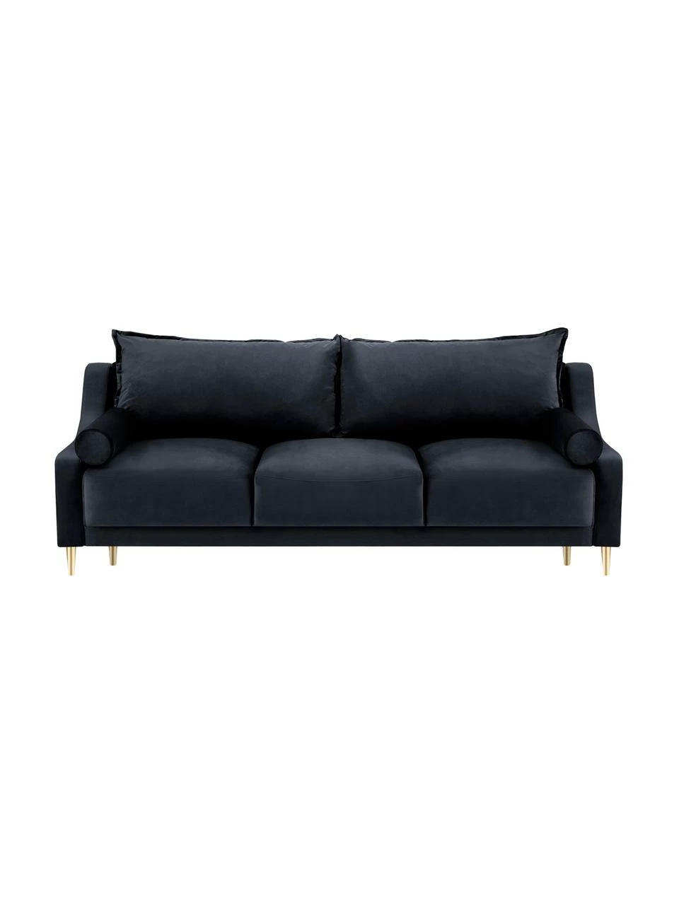 Canapé convertible en velours (3 places) avec fonction de rangement, 2 coussins de dos et 2 coussins décoratifs