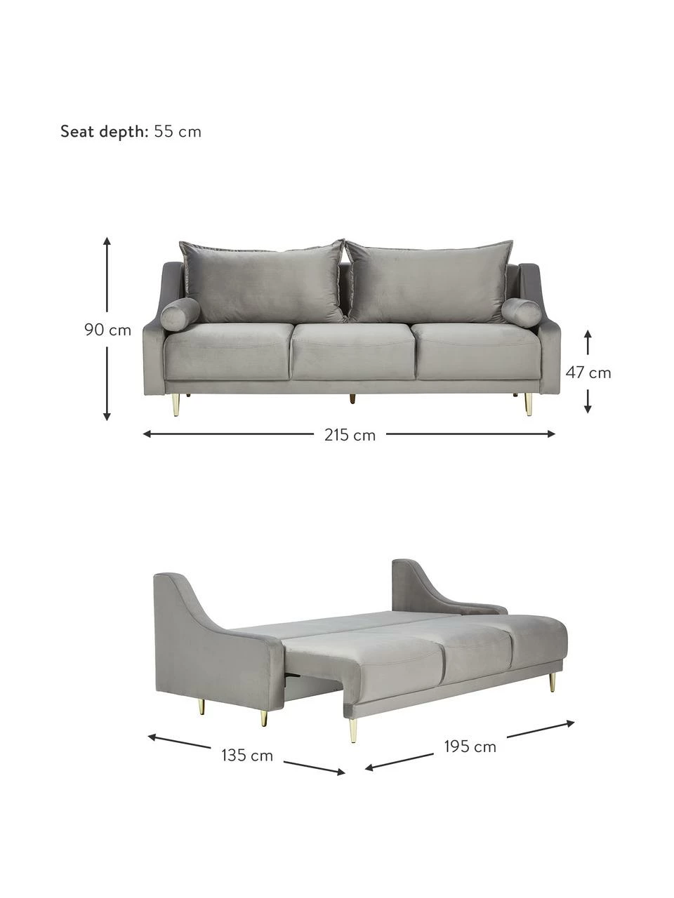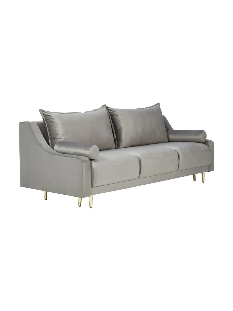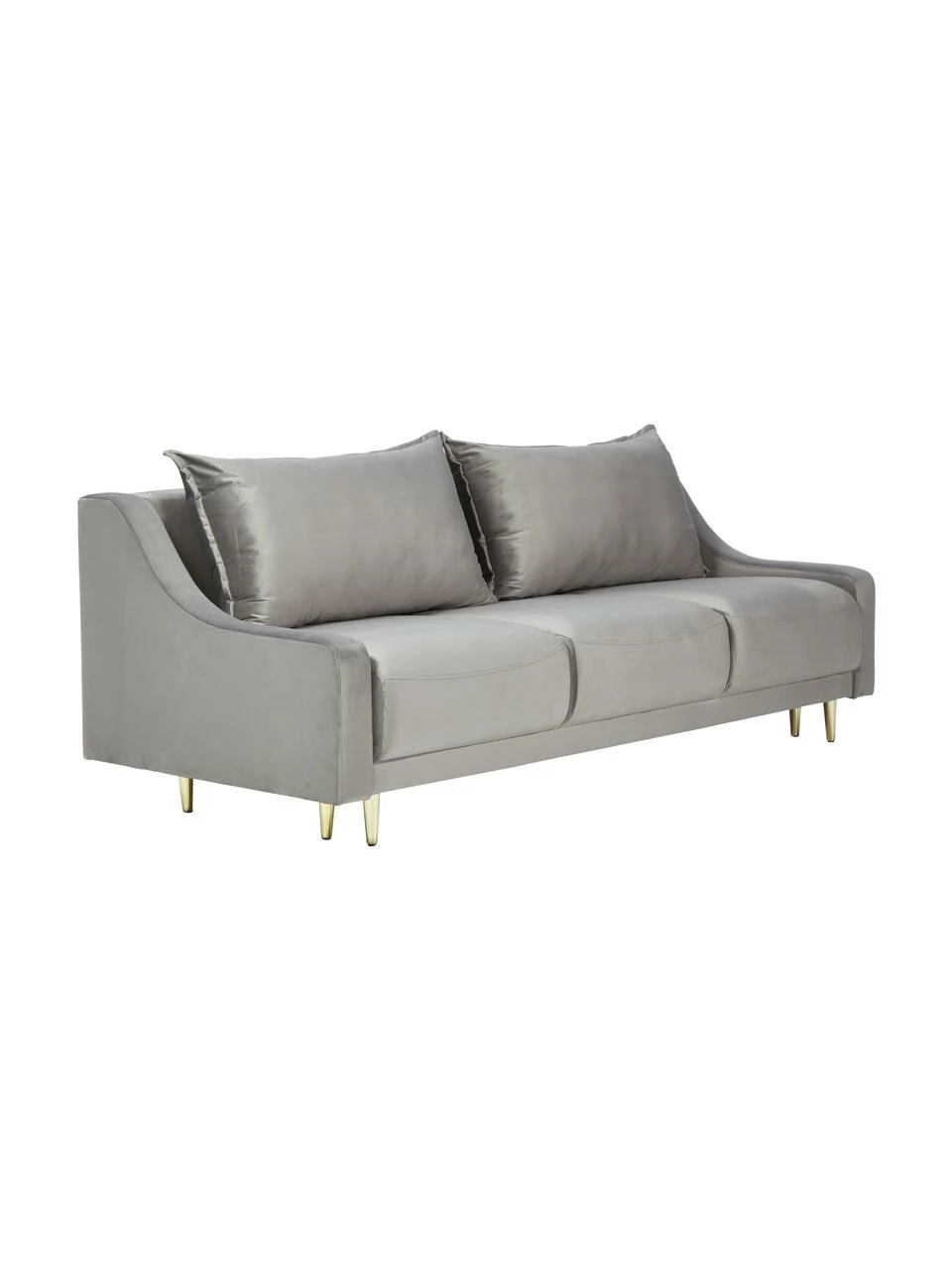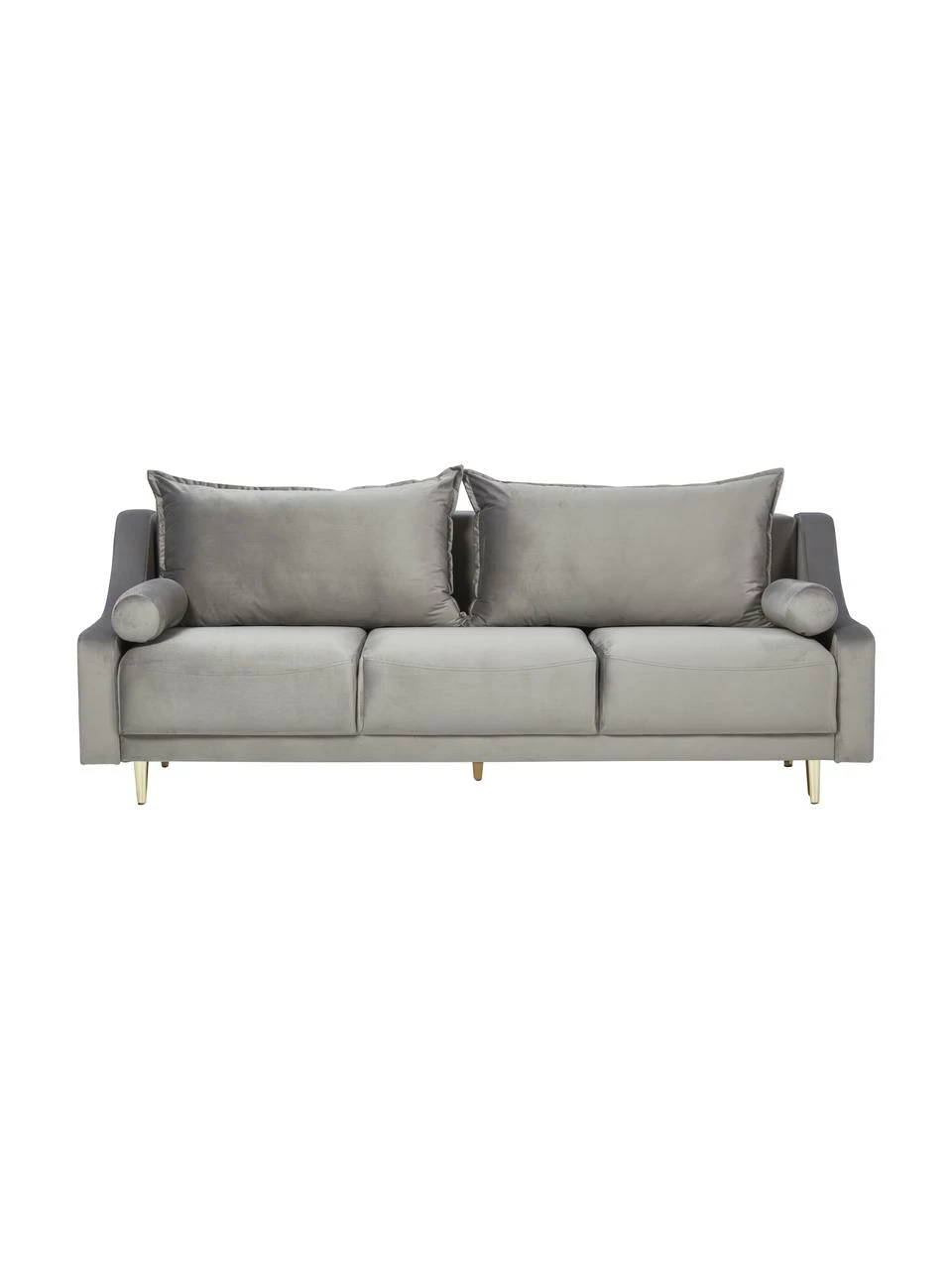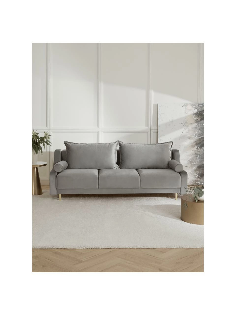 Canapé convertible en velours (3 places) avec fonction de rangement, 2 coussins de dos et 2 coussins décoratifs