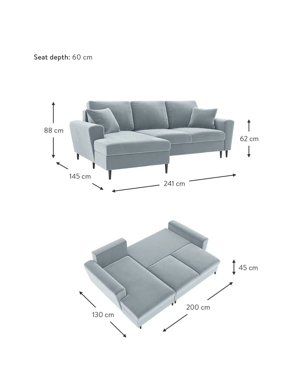 Profondeur sans coussin : 130 cm