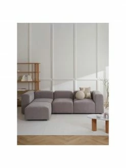 Westwing Collection Canapé modulable 3 places gris argenté avec pouf Lena, larg. 209 x prof. 181 cm