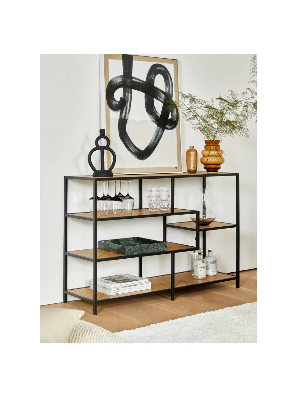 De Berlin à New York : quel est le point commun des créatifs du monde entier ? Ils aiment le look industriel ! Les étagères, tables basses, tables d’appoint et bien d’autres articles de la série Seaford sont idéaux pour cela. avec leur design épuré et leur élégant placage en bois, elles donnent un caractère de loft urbain à votre intérieur. Également bien : elles font disparaître le bric-à-brac derrière leurs portes ou exposent la décoration de manière intelligente