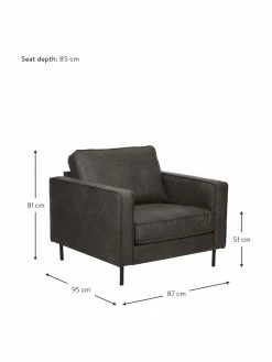 Westwing Collection Fauteuil de salon cuir recyclé brun-gris Hunter, larg. 87 x prof. 95 cm