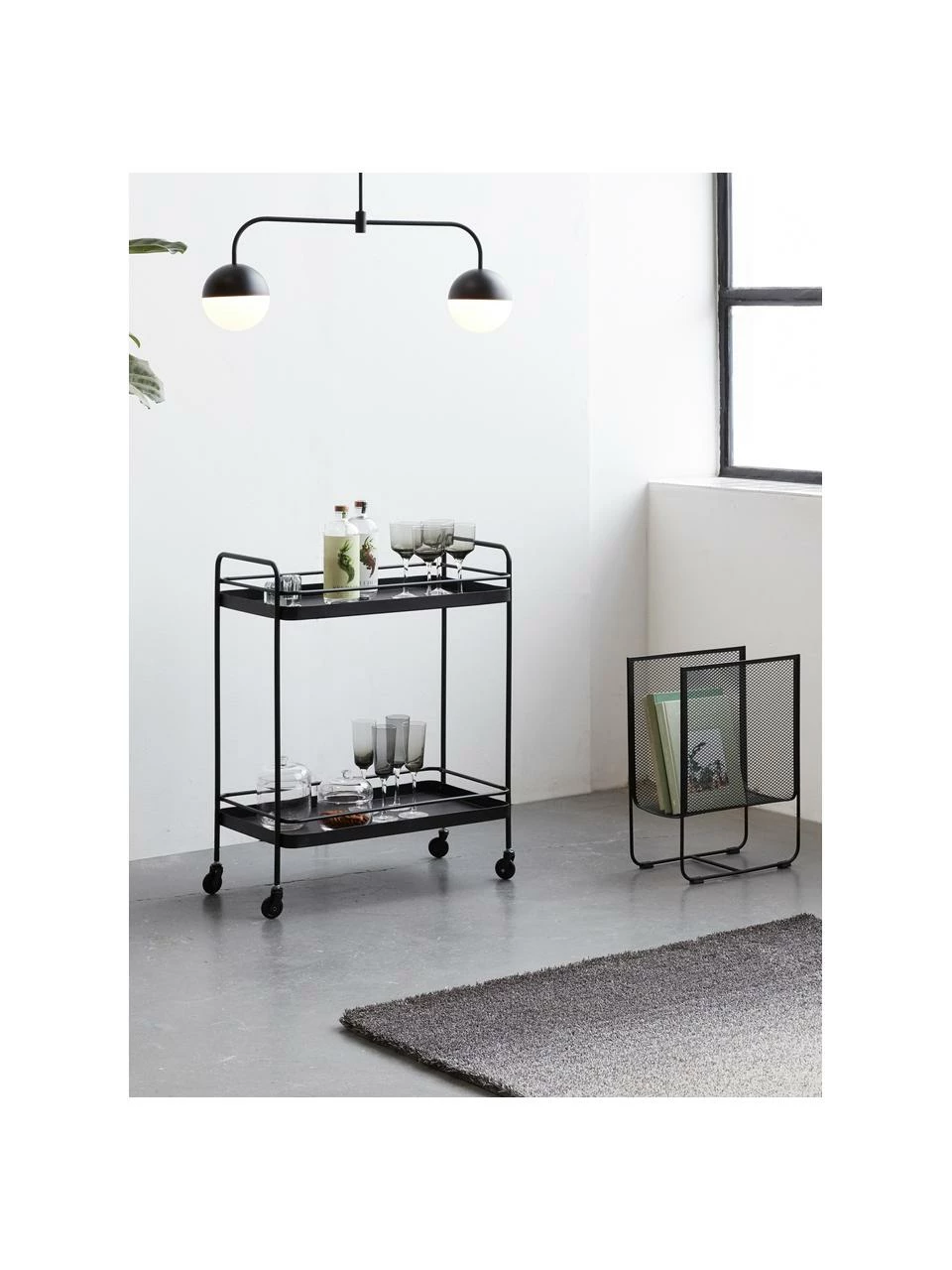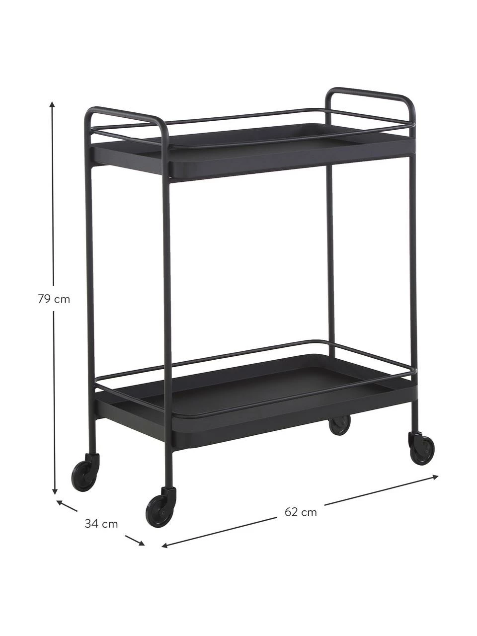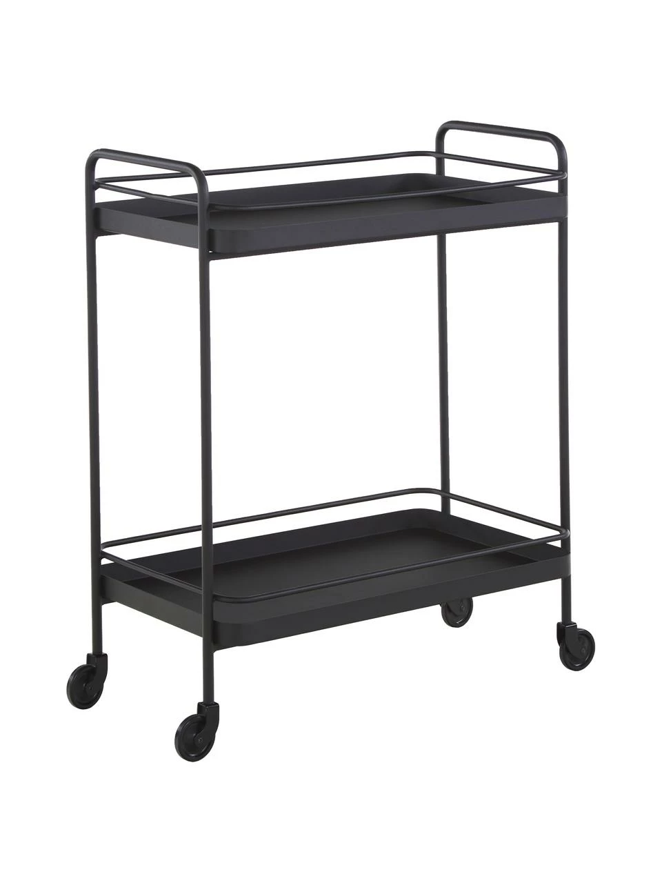 Desserte à surface brute, à 2 étages et 4 roulettes non verrouillables
