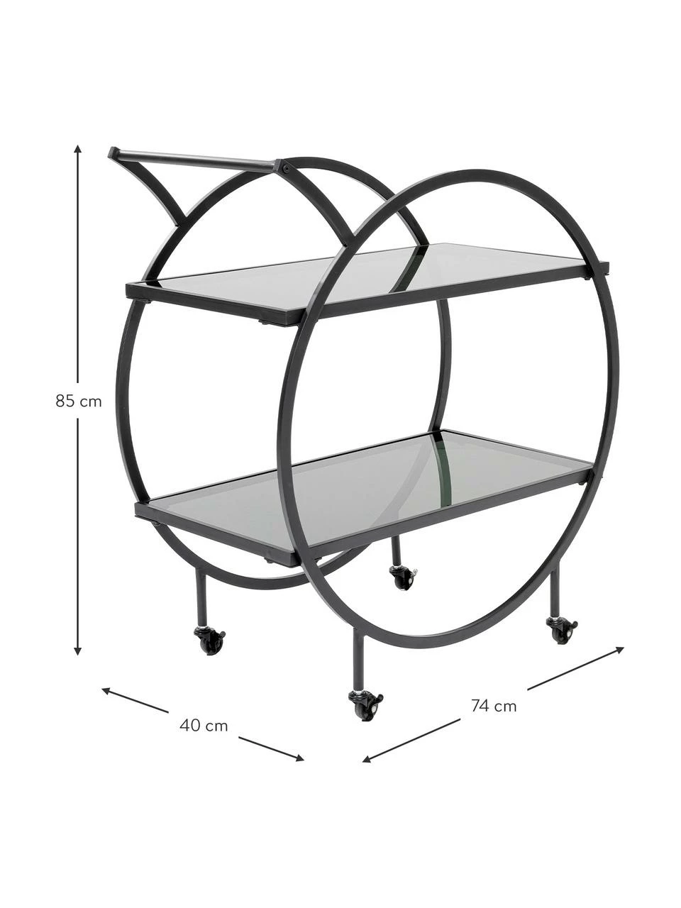 Desserte avec 2 tablettes et 4 roulettes verrouillables