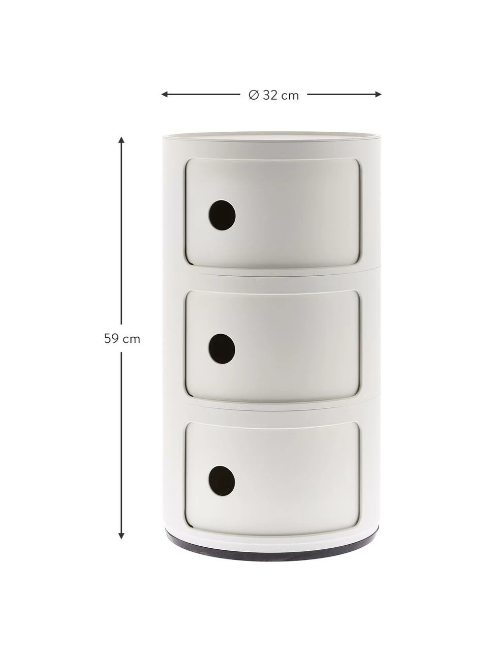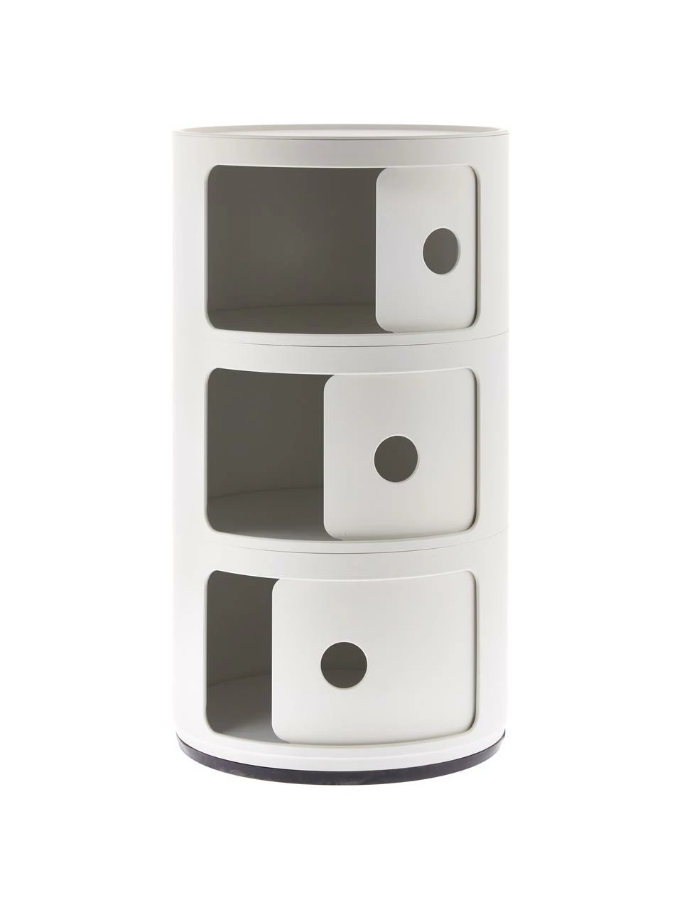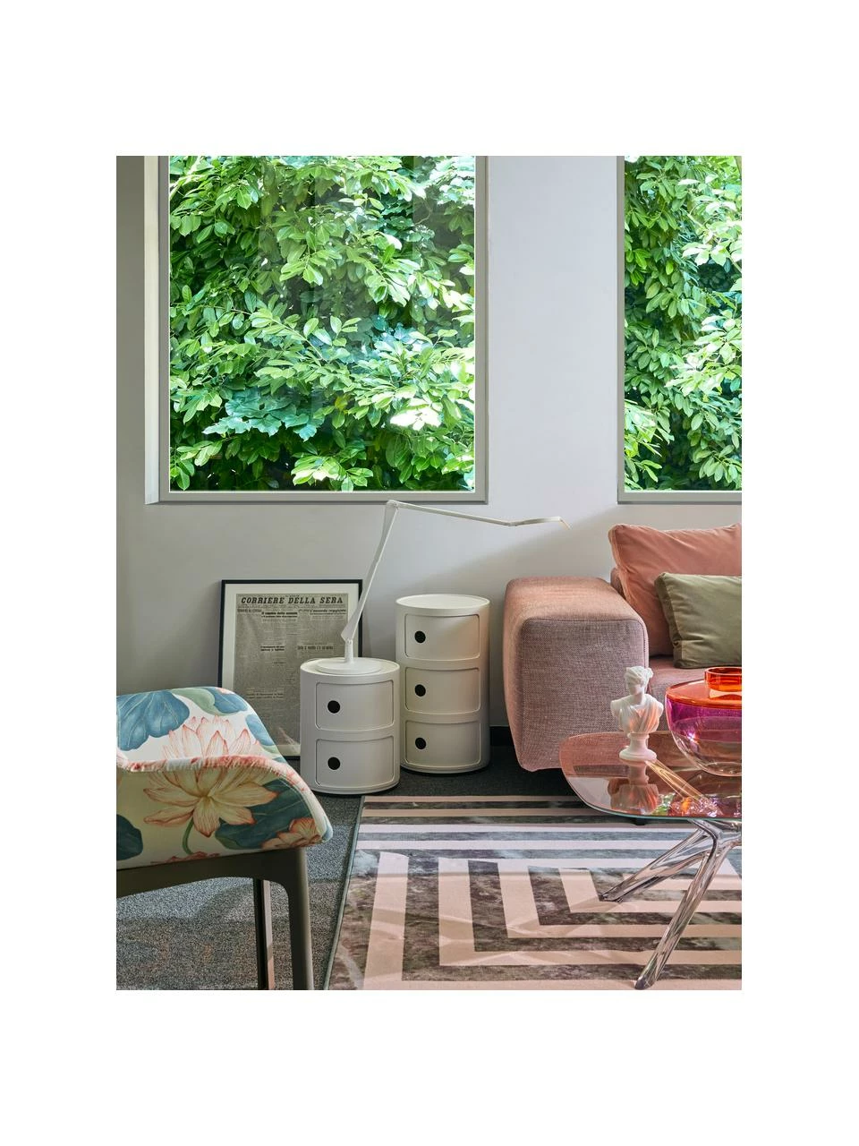 Le Componibile, le grand best-seller de Kartell, est également disponible en version blanc mat et noir mat. La nouvelle édition en matériau recyclé provient de déchets industriels et conserve les mêmes caractéristiques que la version originale