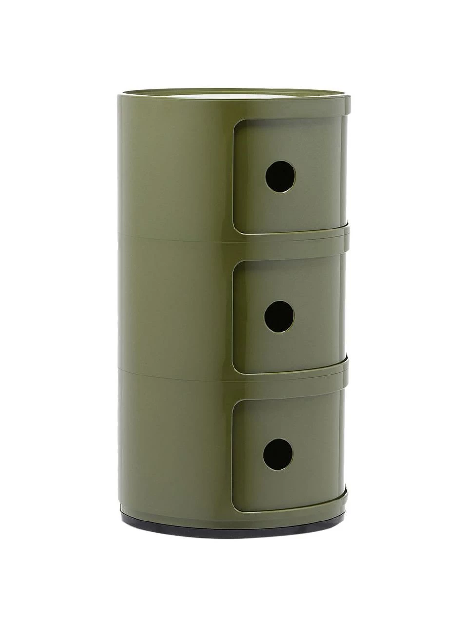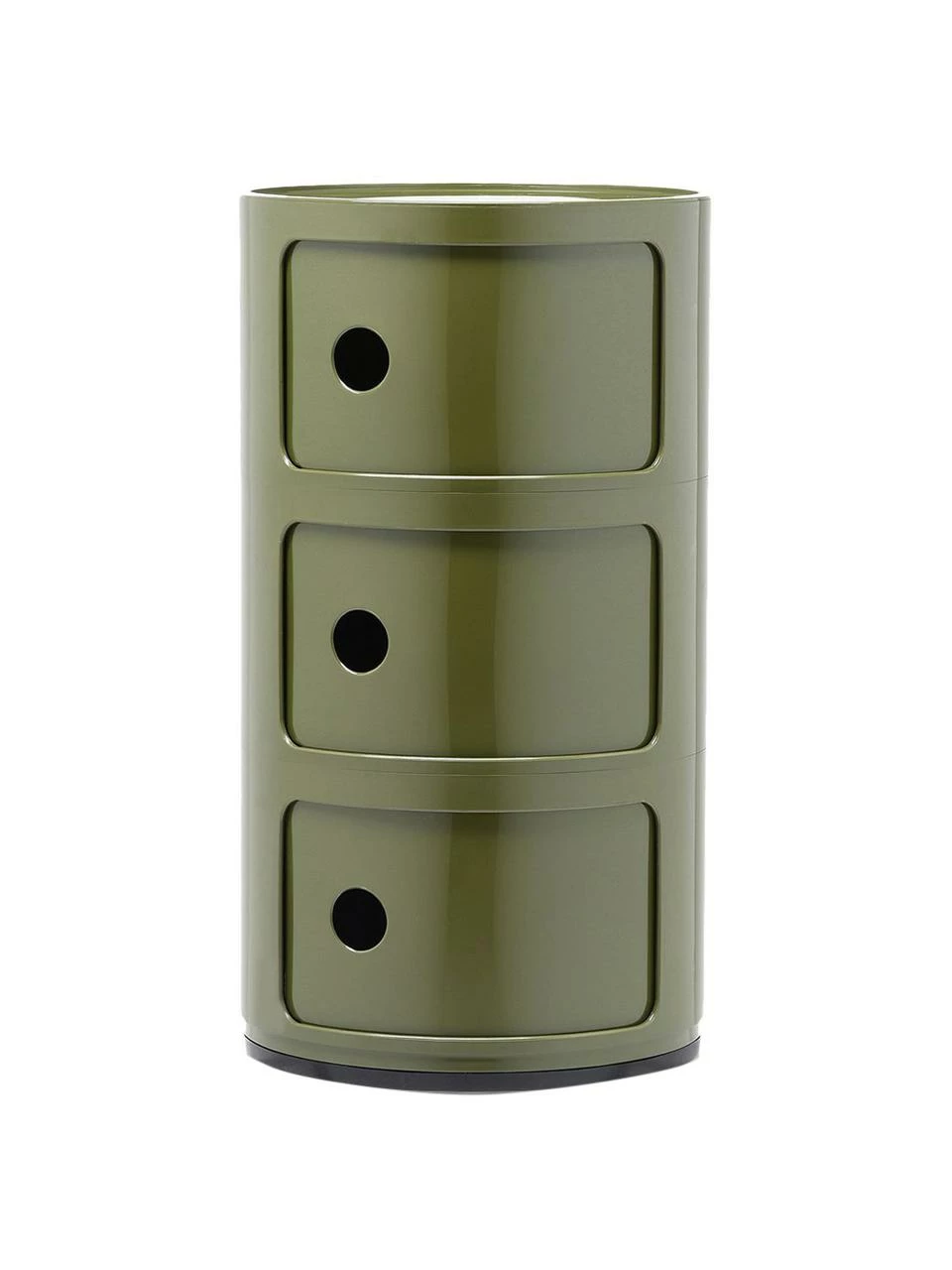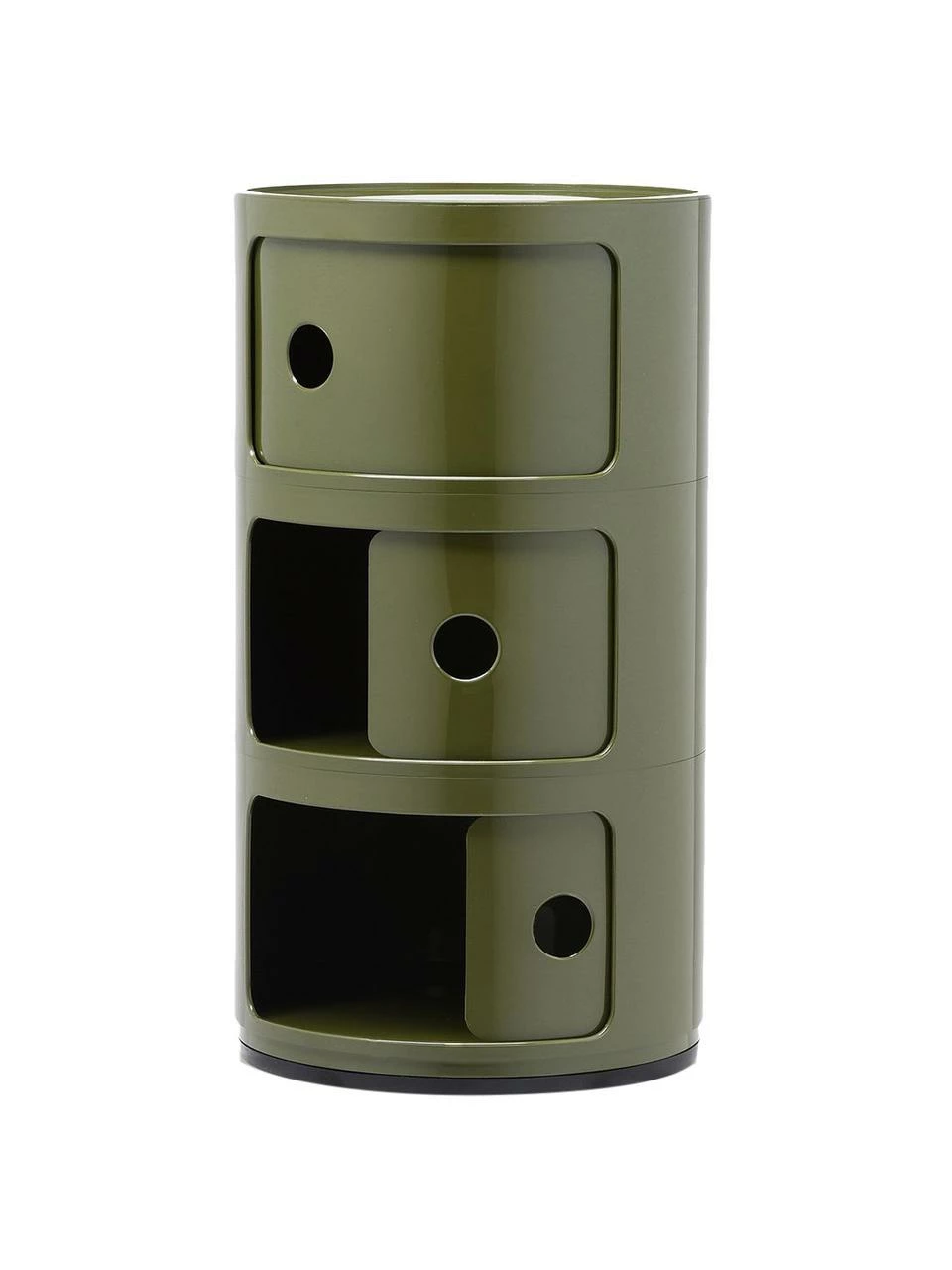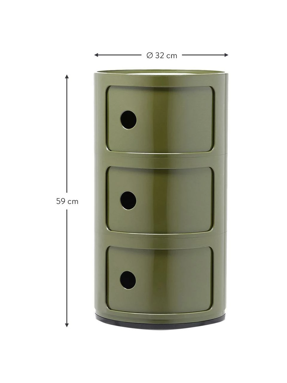 – Meuble composé de 3 compartiments de stockage ronds avec portes coulissantes