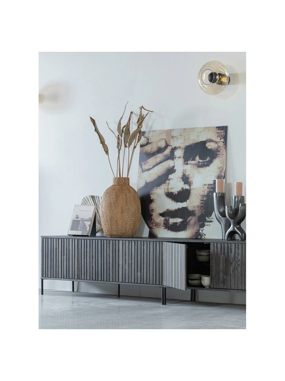 – Meuble TV avec 3 portes cannelées