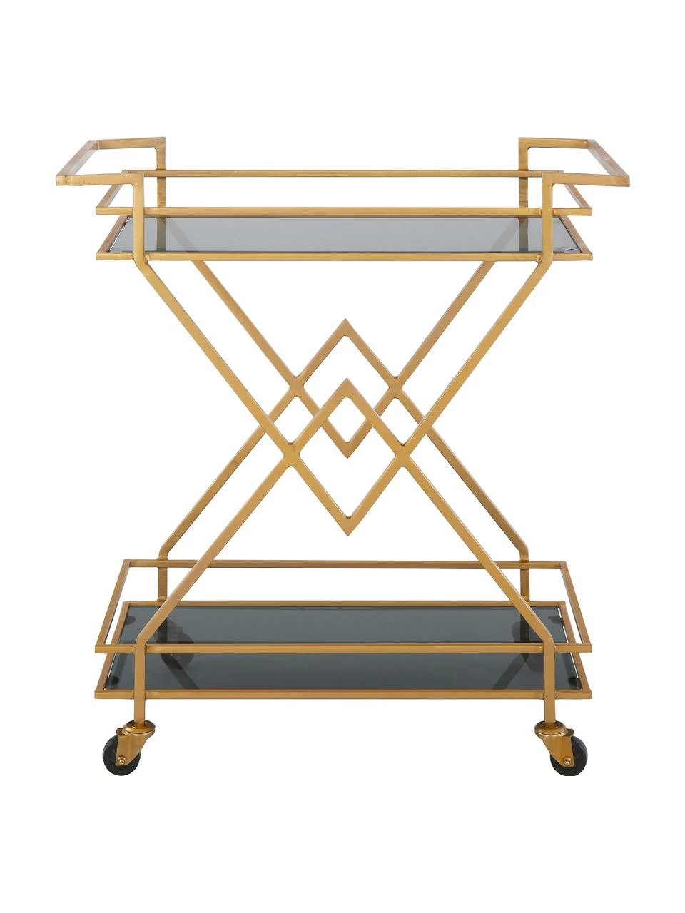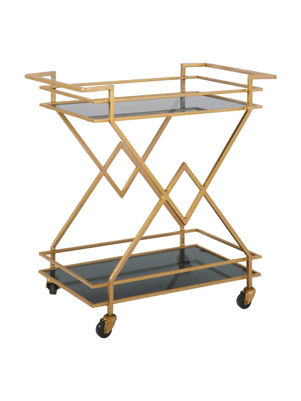 La finition dorée antique ainsi que la surface irrégulière apportent à chaque desserte un charme particulier et unique