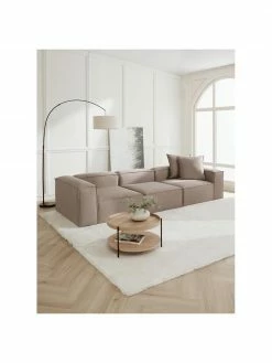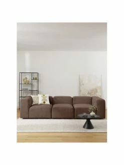 Westwing Collection Canapé modulable 4 places brun foncé avec pouf Lena, larg. 284 x prof. 181 cm