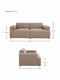 Westwing Collection Canapé (2 places) nougat avec pieds en métal Moby, larg. 170 x prof. 95 cm