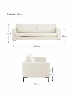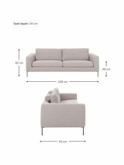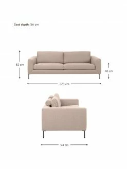 Westwing Collection Canapé 3 places beige avec pieds en métal Cucita, larg. 228 x prof. 94 cm