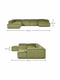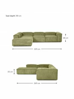 Westwing Collection Canapé modulaire 4 places velours côtelé beige Lennon, larg. 327 x prof. 119 cm