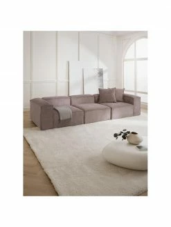 Westwing Collection Canapé modulaire 4 places velours côtelé brun Lennon, larg. 327 x prof. 119 cm