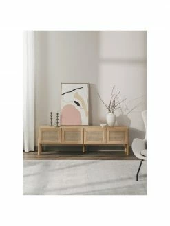 Westwing Collection Meuble bas bois de chêne avec cannage Jolie, larg. 180 x haut. 55 cm