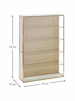 Nordal Étagère murale dorée avec tablettes et portes en verre Ada, larg. 35 x haut. 50 cm