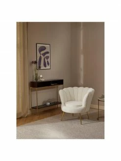 Westwing Collection Fauteuil cocktail en tissu bouclé blanc Elodie, larg. 86 x prof. 62 cm