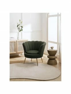 Westwing Collection Fauteuil cocktail tissu bouclé blanc crème Oyster, larg. 81 x haut. 75 cm