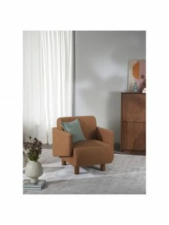 Westwing Collection Fauteuil design tissu bouclé rouge corail Solomon, larg. 95 x prof. 80 cm