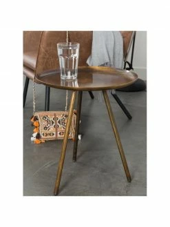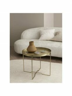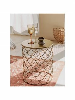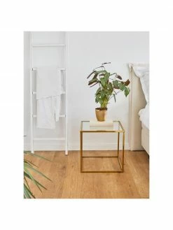 Westwing Collection Table d’appoint dorée avec plateau en verre Maya, larg. 45 x haut. 50 cm