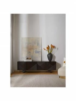 Westwing Collection Buffet bois massif noir à motif chevrons Luca, larg. 180 x haut. 54 cm