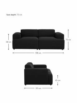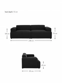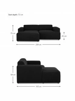 Westwing Collection Banc rembourré en cuir noir Sanja, larg. 122 x prof. 54 cm
