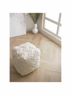 Westwing Collection Pouf bohème tufté main blanc crème Akesha, larg. 50 x haut. 50 cm