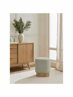 Westwing Collection Tabouret tissu bouclé vert matcha Yves, larg. 43 x haut. 47 cm