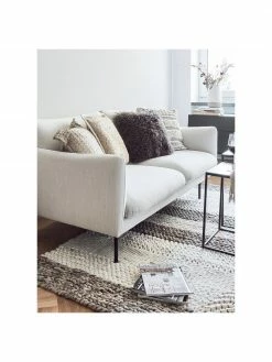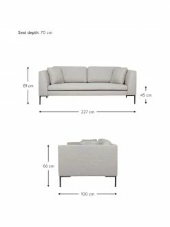 Westwing Collection Canapé 3 places tissu beige pieds en métal Fluente, larg. 196 x prof. 85 cm