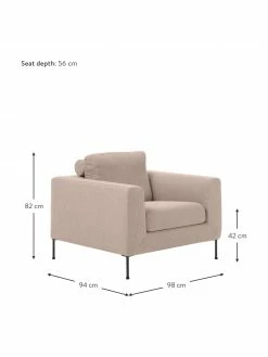 Westwing Collection Fauteuil lounge taupe avec pieds en métal Cucita, larg. 98 x prof. 94 cm
