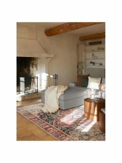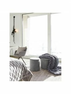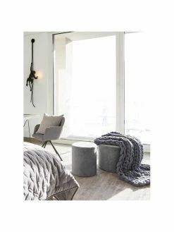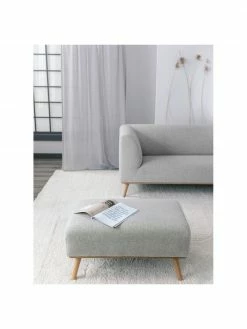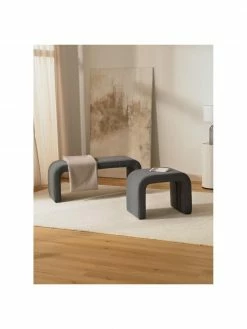 Westwing Collection Tabouret en laine avec pieds en bois Archie, larg. 87 x haut. 45 cm