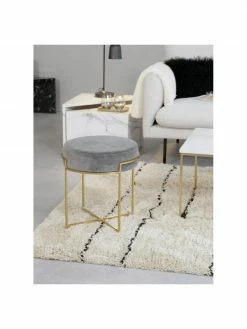 Westwing Collection Tabouret en velours avec structure en métal Madeleine, Ø 40 x haut. 45 cm