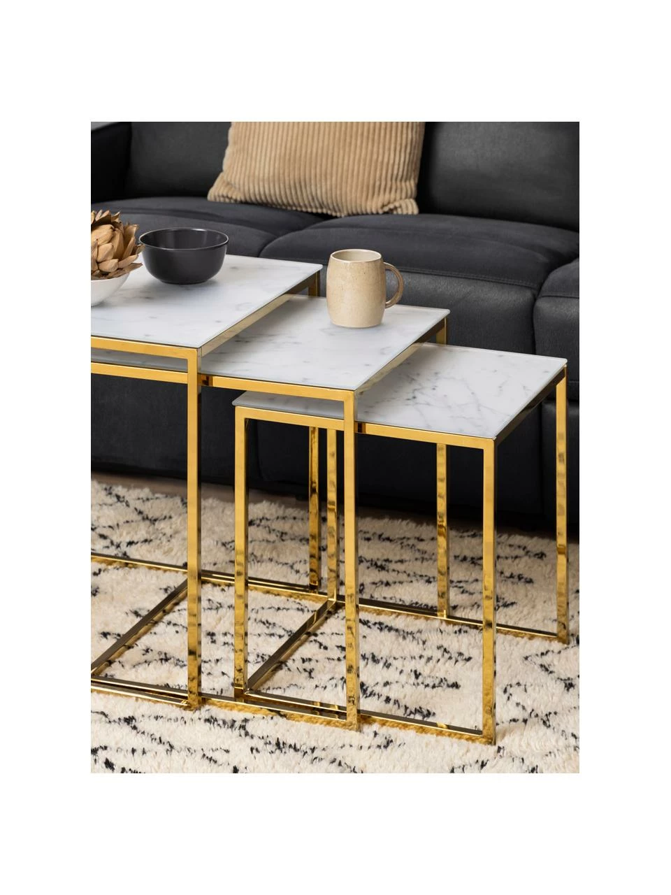 – Avec des plateaux de table marbrés