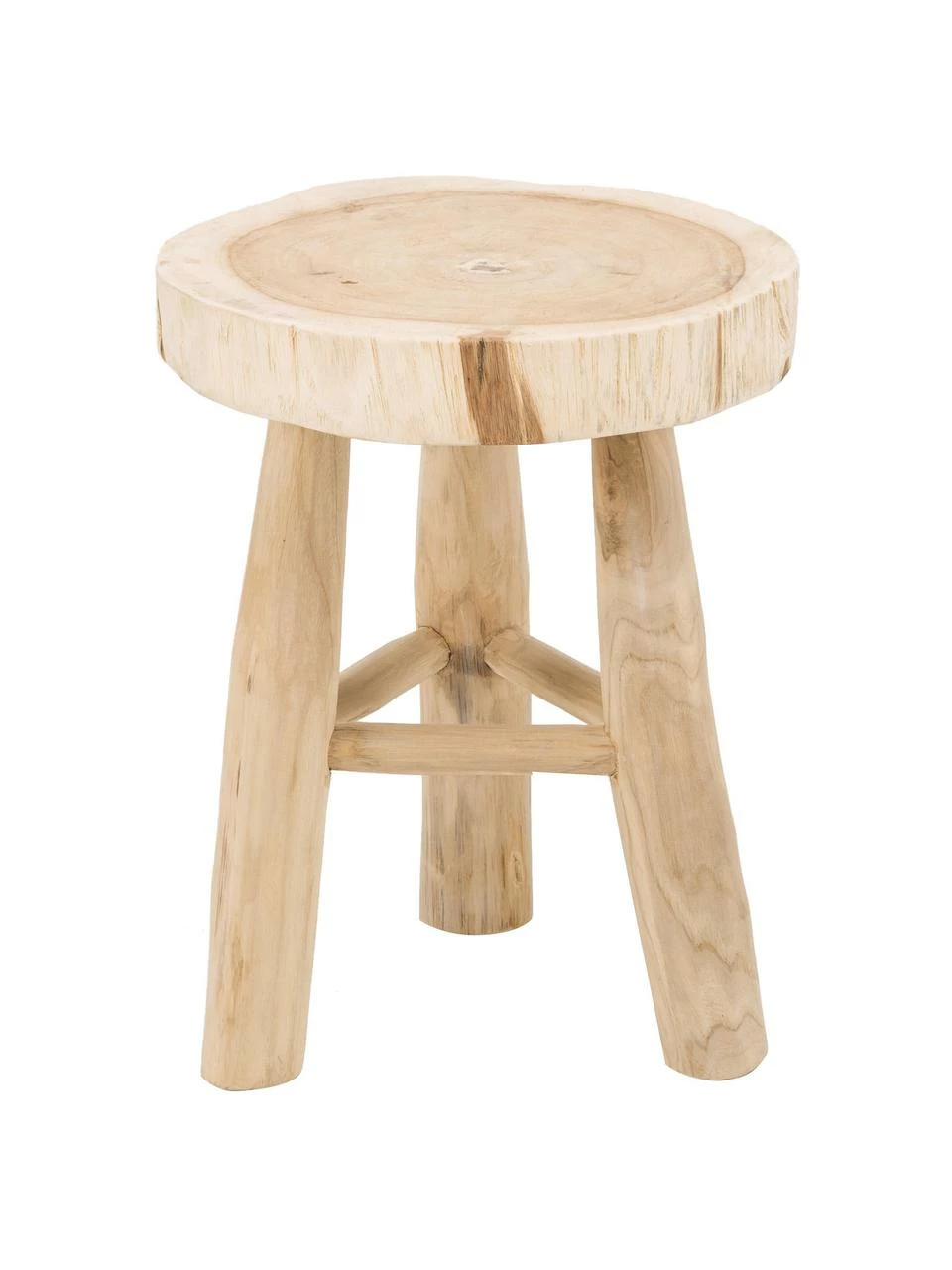 – Tabouret en bois recyclé avec des traces d’usure intentionnelle