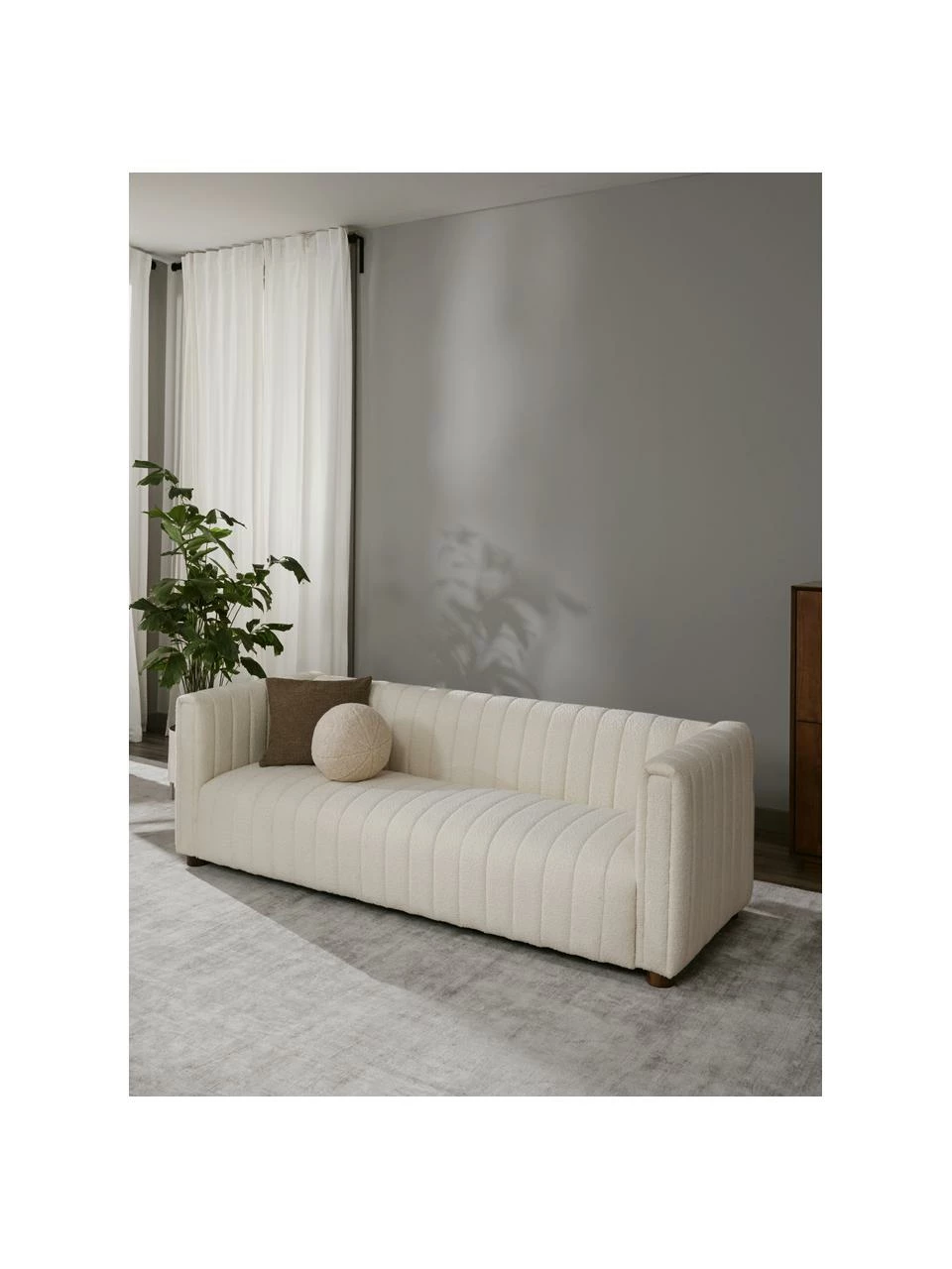 – Canapé 3 places en tissu bouclé moelleux