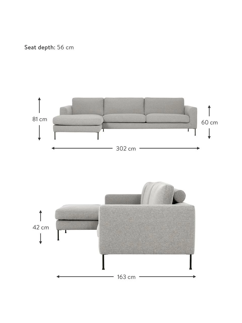larg. 302 cm, haut. 81 cm, prof. 163 cm