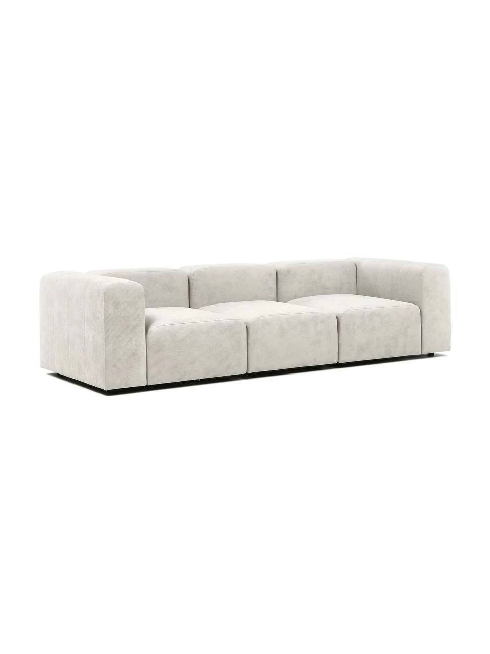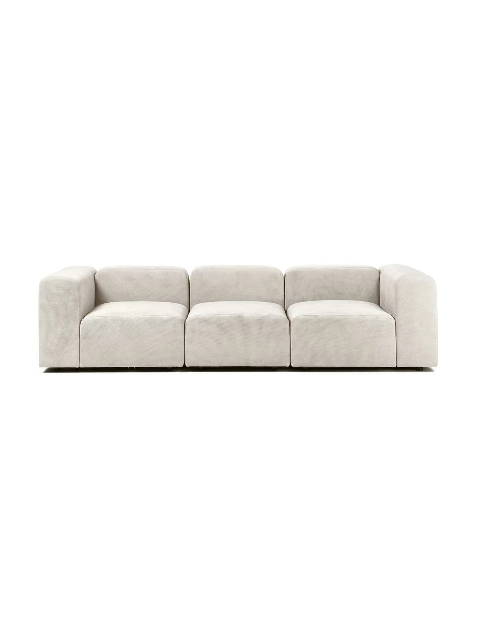 Les trois modules peuvent être combinés de manière variable pour former différentes formes. Le canapé est livré en trois parties qui peuvent être assemblées individuellement grâce à des verrous situés sur la face inférieure des modules