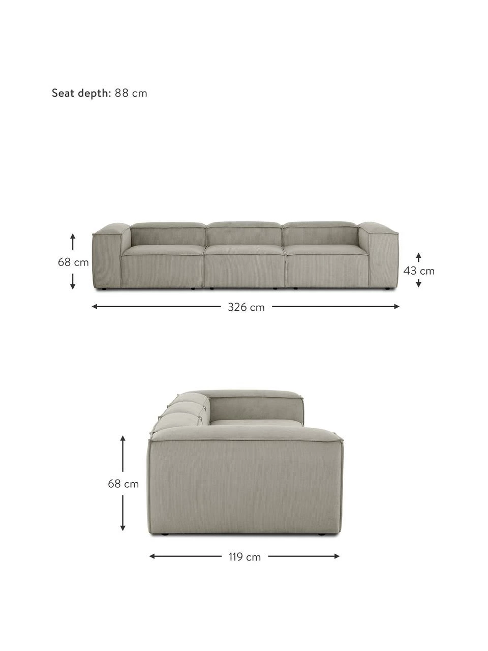 larg. 327 cm, haut. 68 cm, prof. 119 cm
