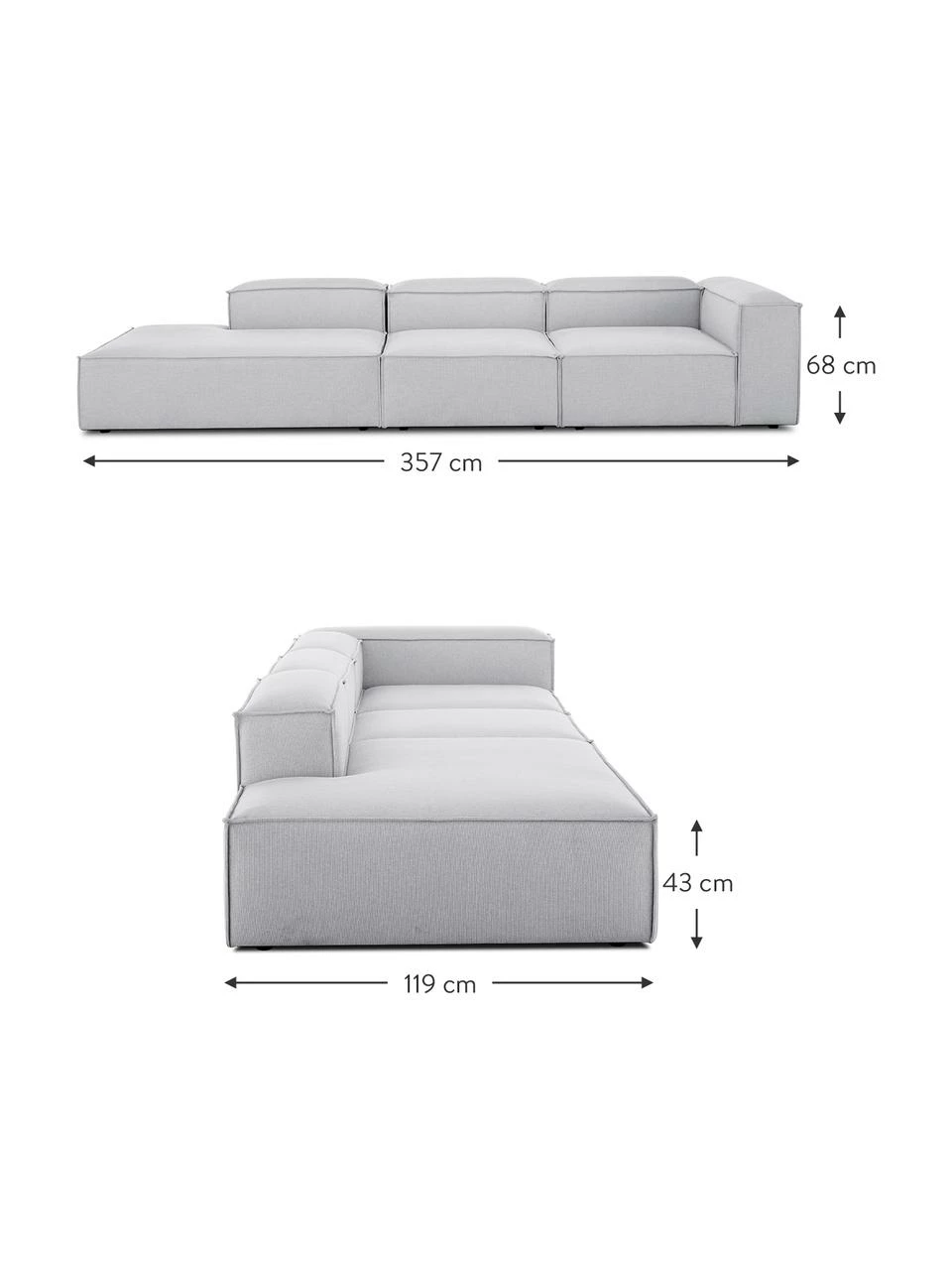 larg. 357 cm, haut. 68 cm, prof. 119 cm