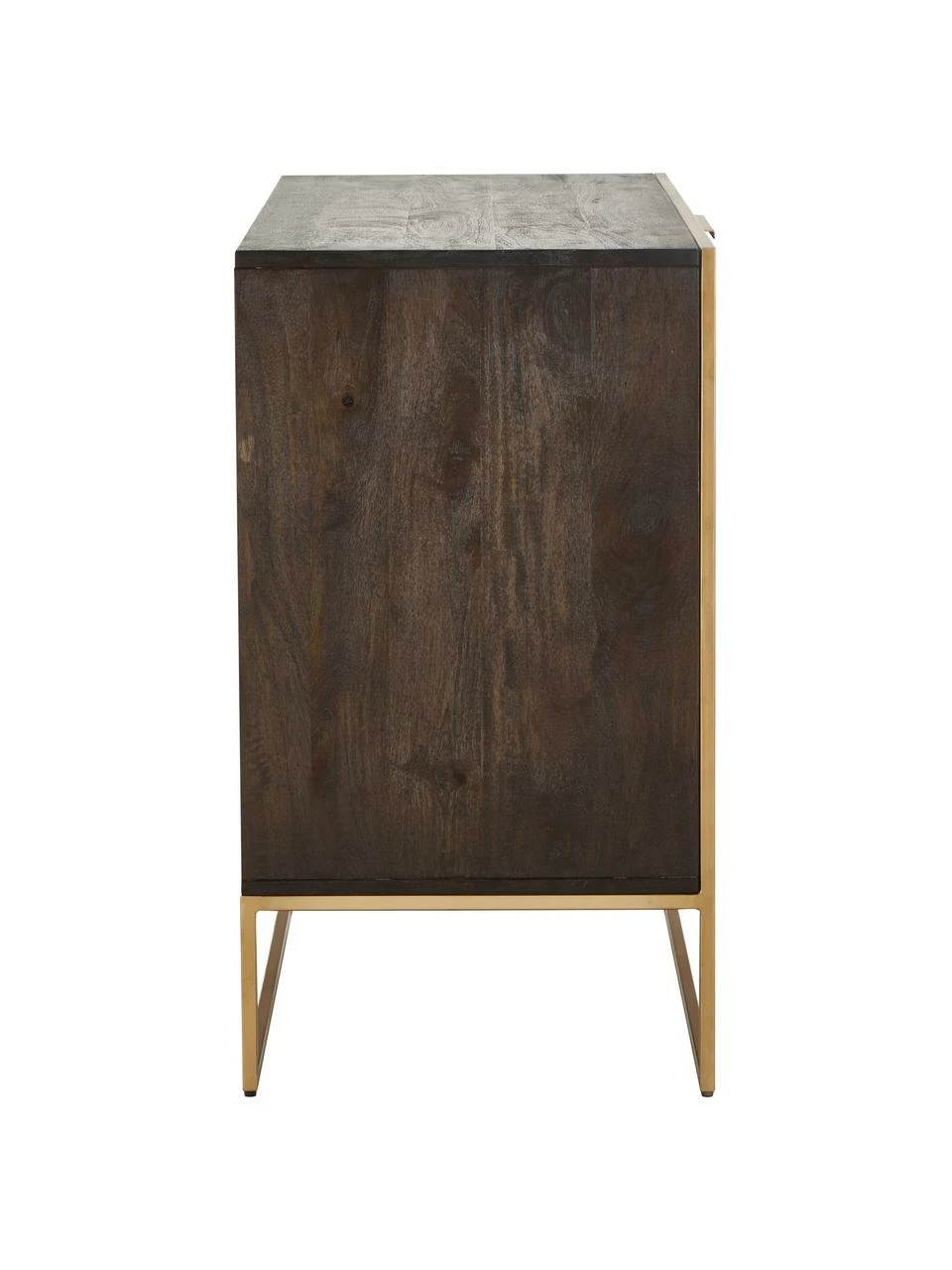 « Harry » apporte une charmante touche du milieu du siècle à notre intérieur. Le buffet, la table de nuit ou la commode de la série sont des classiques cool grâce à des détails dorés et au bois de manguier laqué, qui apportent un glamour moderne à nos intérieurs.