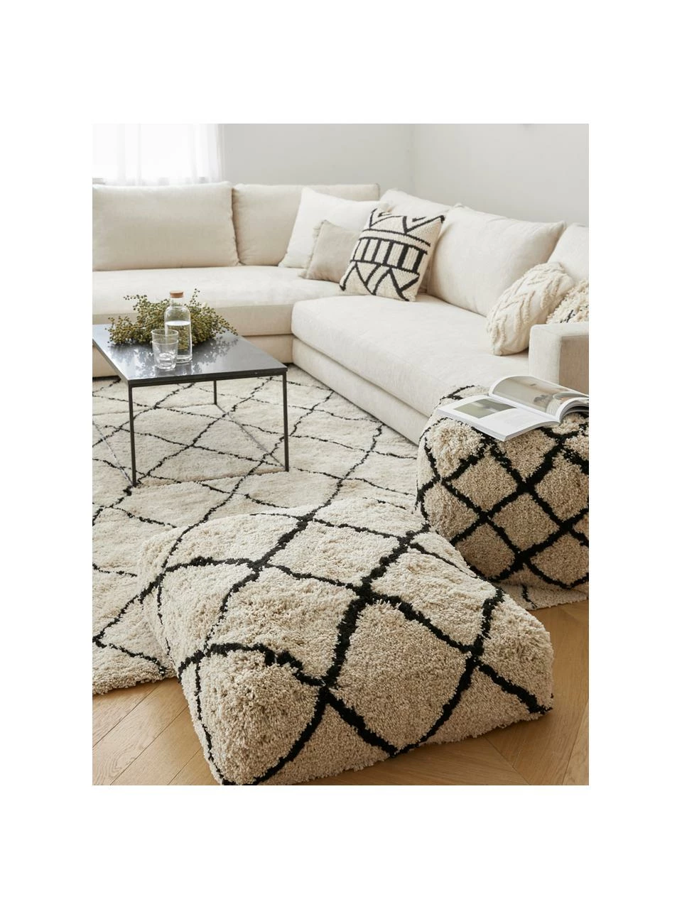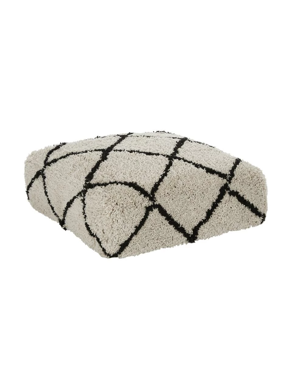 Des détails tels que les motifs de coton noir et les franges moelleuses rendent ce coussin unique. Il attirera l’œil de vos invités, quel que soit le style de votre séjour