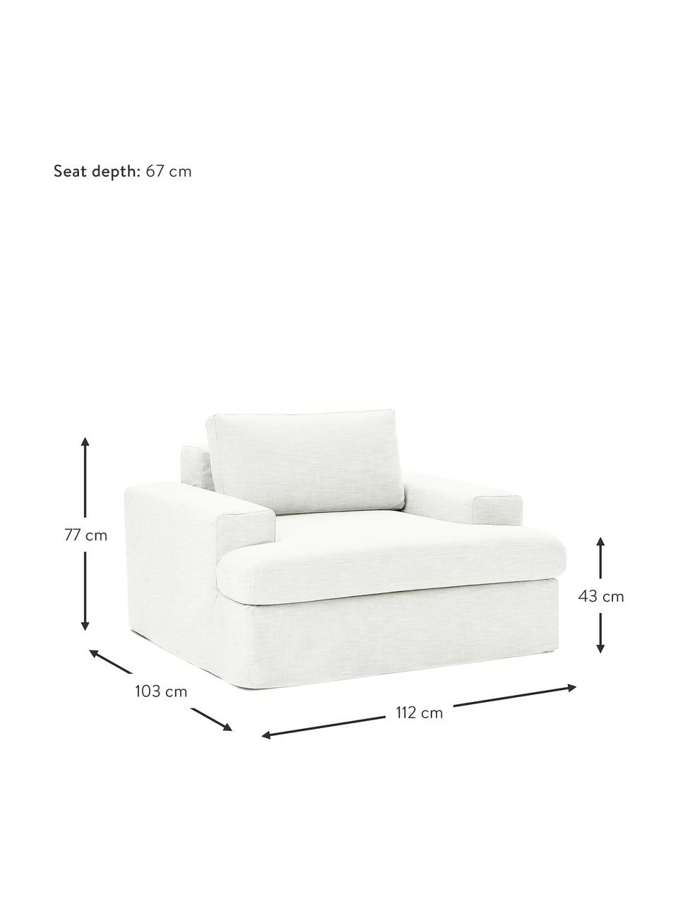 Profondeur : 85 cm (sans coussin), 67 cm (avec coussin)