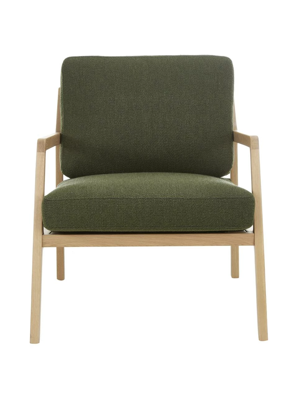 – Fauteuil en tissu épais avec structure en bois de chêne