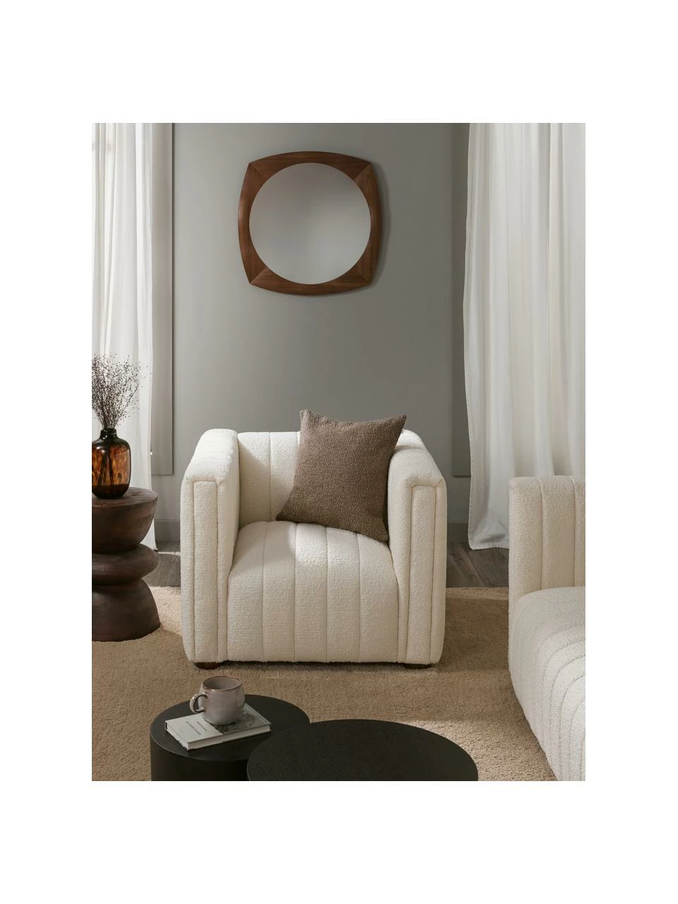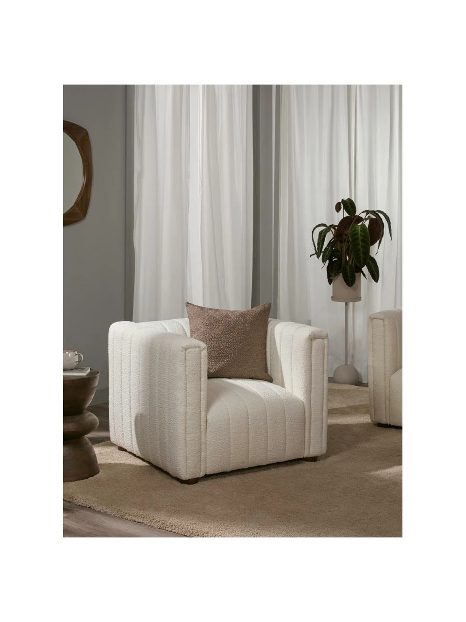 – Fauteuil en tissu bouclé moelleux