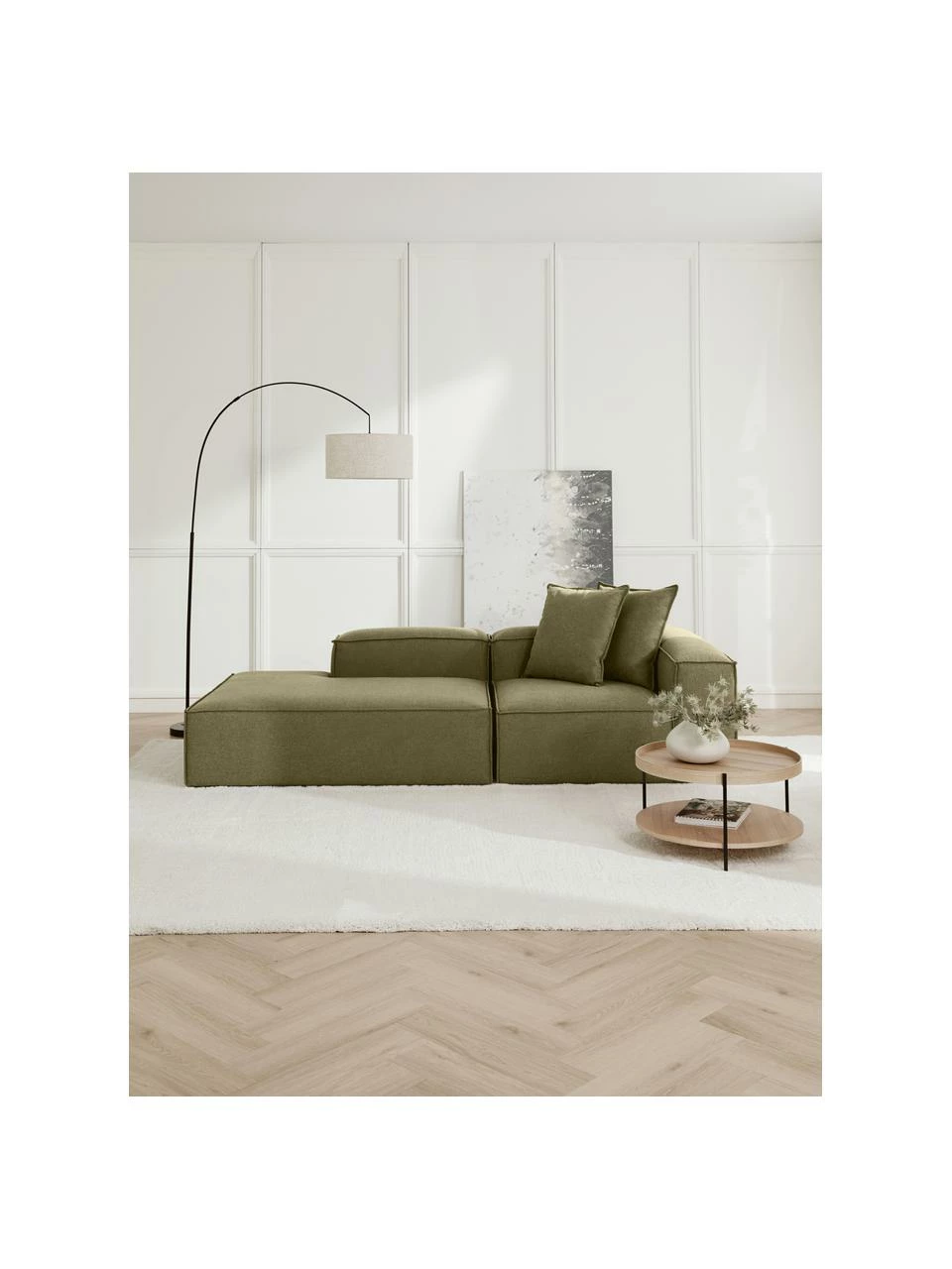 Ce module peut être combiné avec le canapé modulable Lennon, dont les éléments peuvent être assemblés individuellement au moyen de loquets situés sur la face inférieure