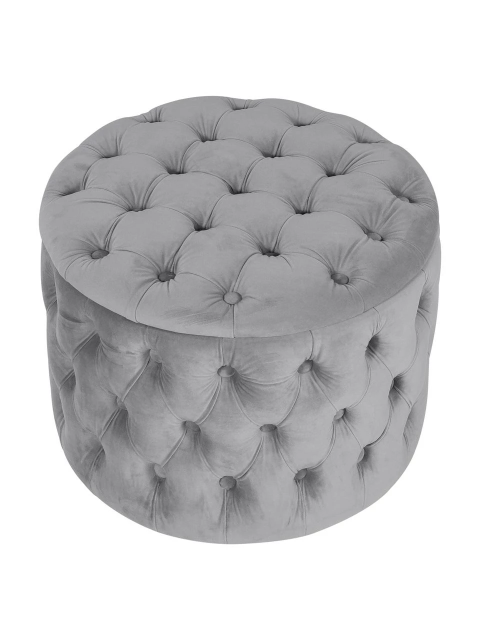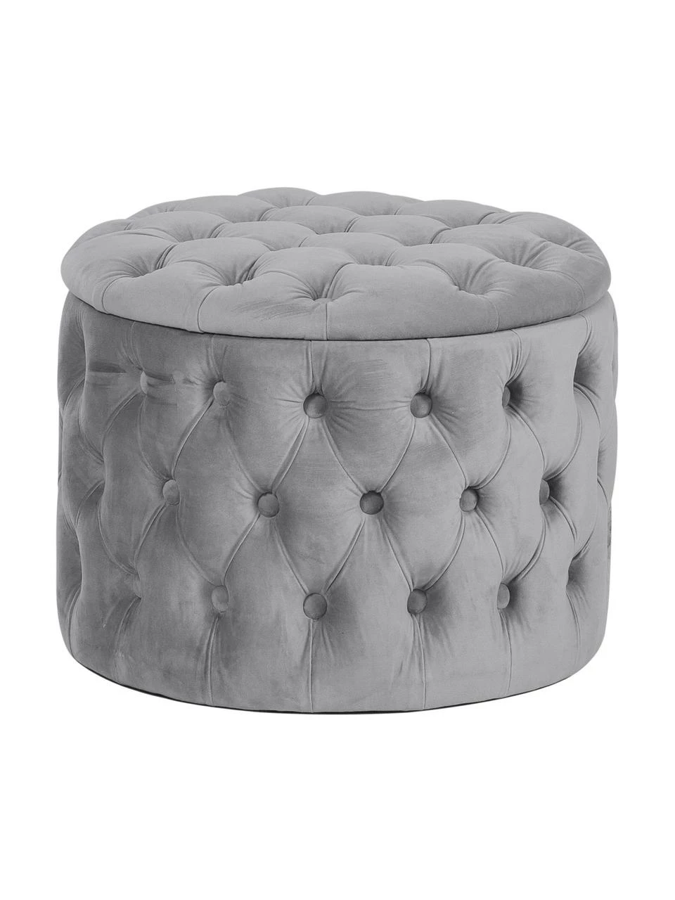 Que ce soit pour poser ses pieds ou comme siège supplémentaire pour les invités : Chiara est polyvalent et offre beaucoup d’espace de rangement. Couvertures, coussins et vêtements disparaissent sous le couvercle en un rien de temps. Nous aimons particulièrement la couverture en velours doux et les boutons décoratifs