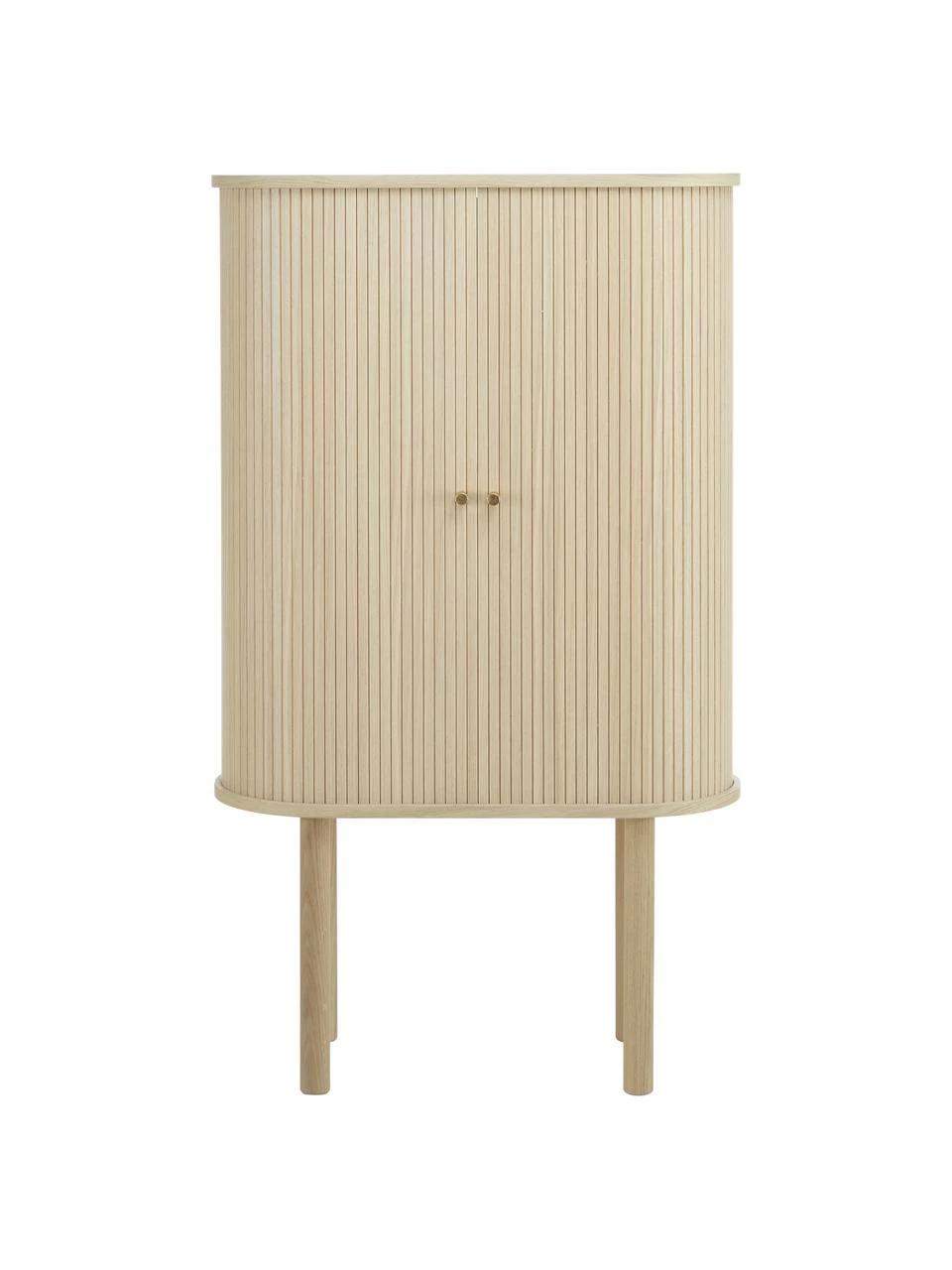 La structure cannelée décorative orne les façades des portes et fait de ce produit un véritable point fort du design qui attire tous les regards ! Les pieds filigranes confèrent en outre au design un aspect minimaliste et épuré