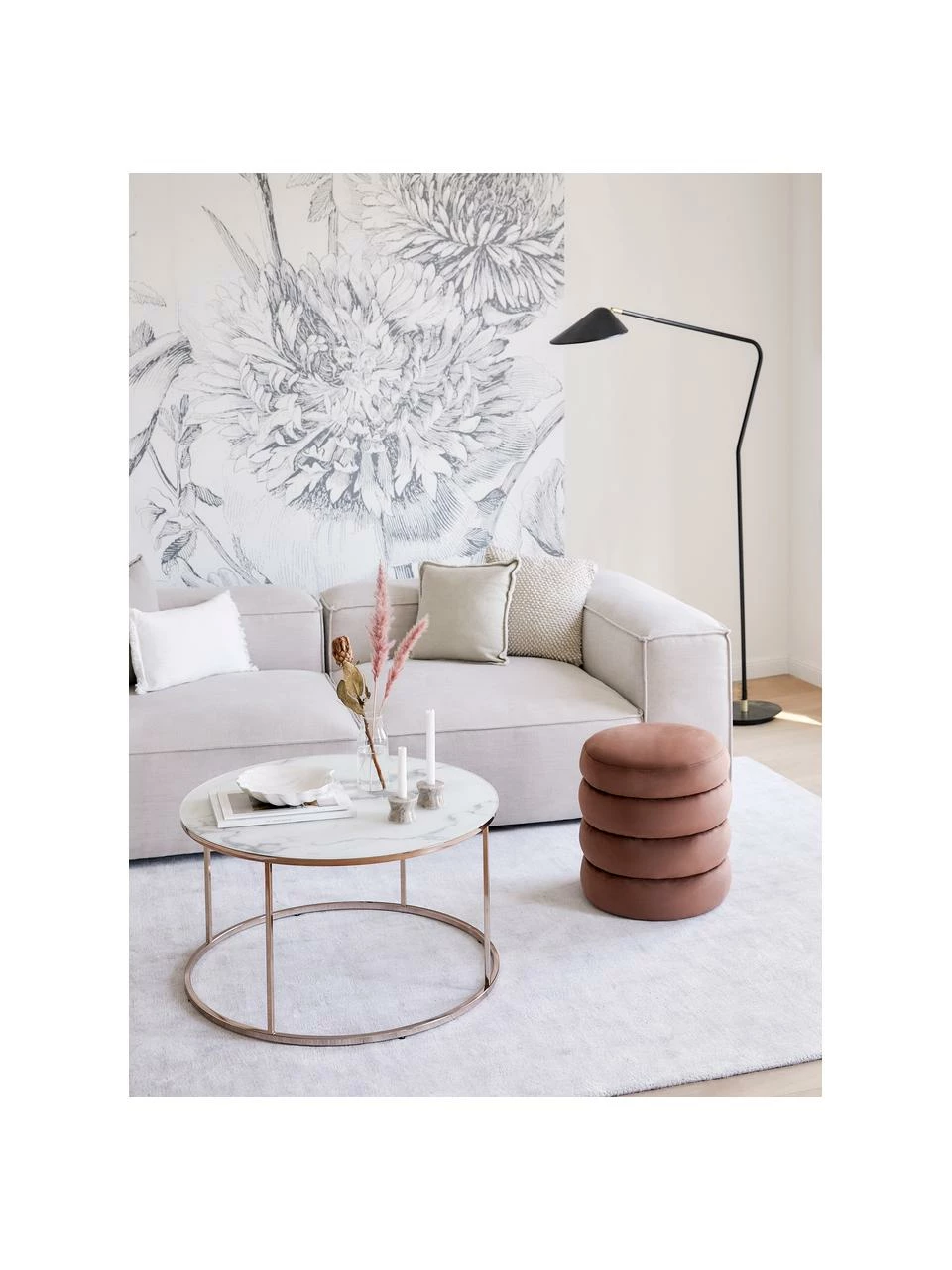 Notre table basse Antigua : Rangement et pièce maîtresse. Avec son plateau en verre marbré, c’est l’un de nos best-sellers. La meilleure partie ? Le cadre est disponible en deux design différents, ainsi qu’en or, argent ou noir pour différents styles d’intérieur, du plus moderne au plus glamour.