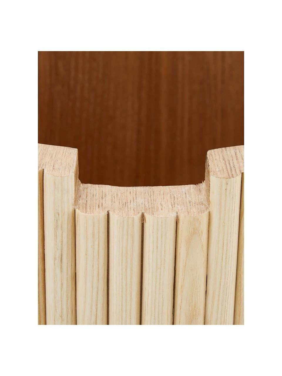 – Table ronde avec structure en placage de frêne visible et rangement