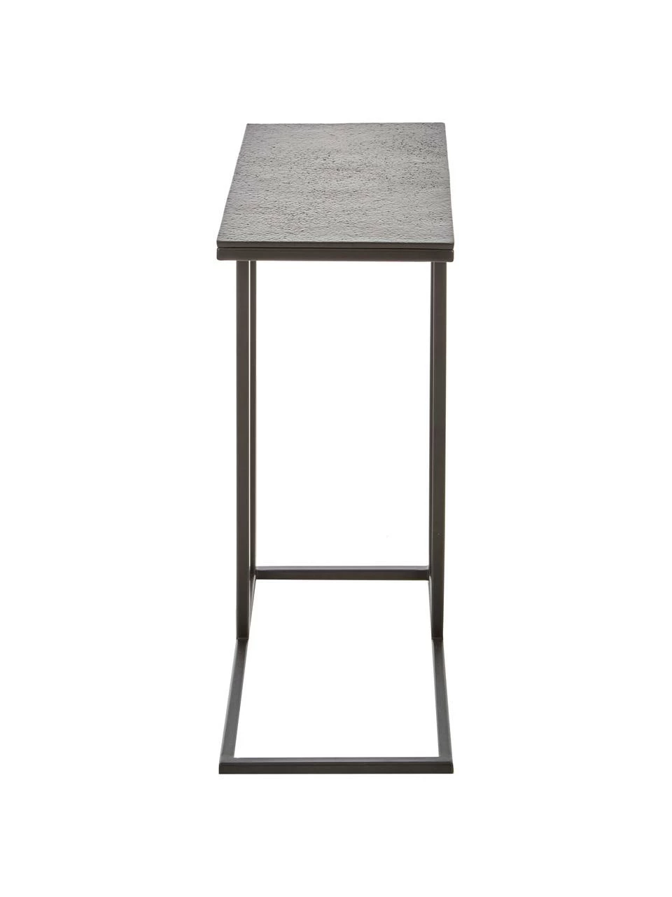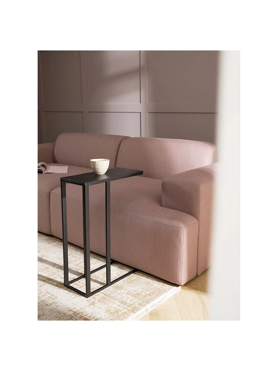 Grâce à son ouverture unilatérale, la table d’appoint peut être placée directement devant un canapé et peut donc servir par exemple de support pour ordinateur portable
